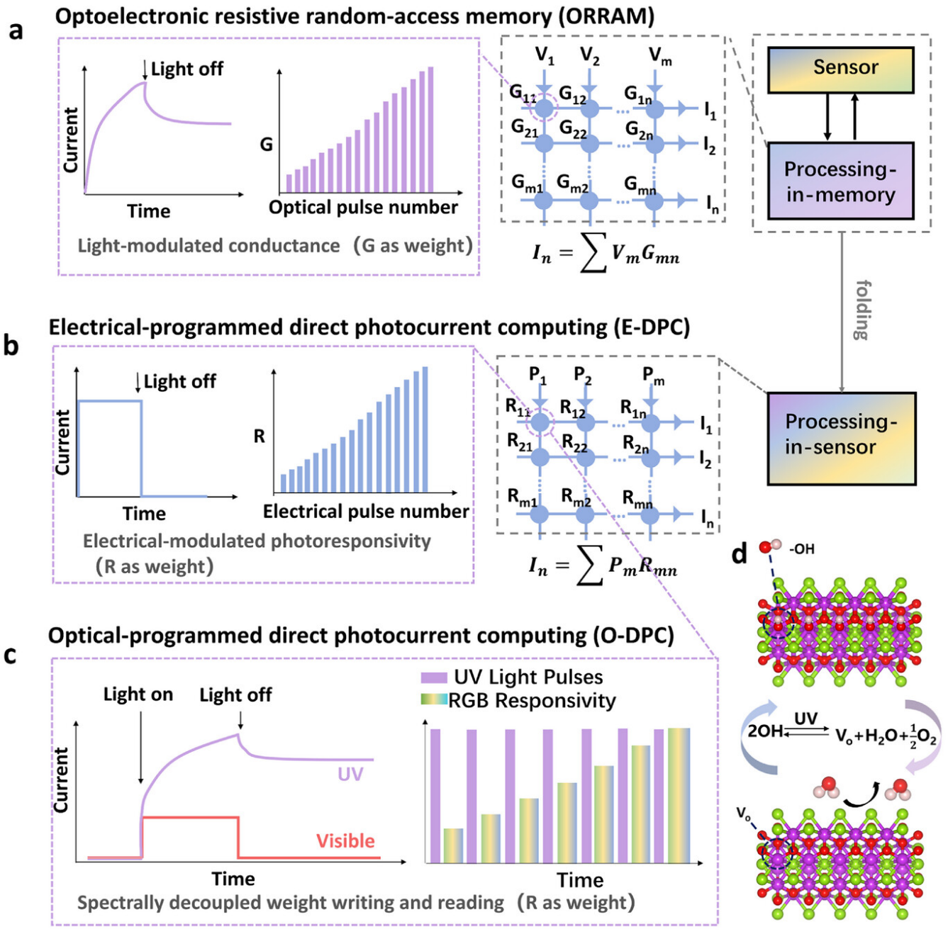 1)光电子电阻随机存取存储器(ORRAM,或“光突触”)利用持久光导性从电荷捕获或相变等机制中建立光可调、非易失性电导作为突触权重;